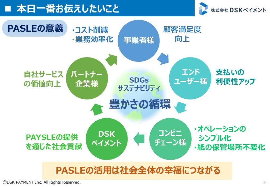 最後に、今後のDSKペイメントの取り組みとして、パートナー企業様とともに様々な業界にPAYSLEを広げ、社会貢献を目指していくことをお伝えし、セミナーを締めくくりました。